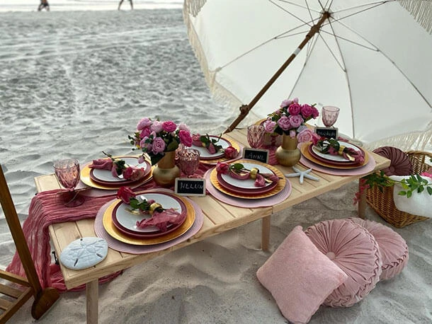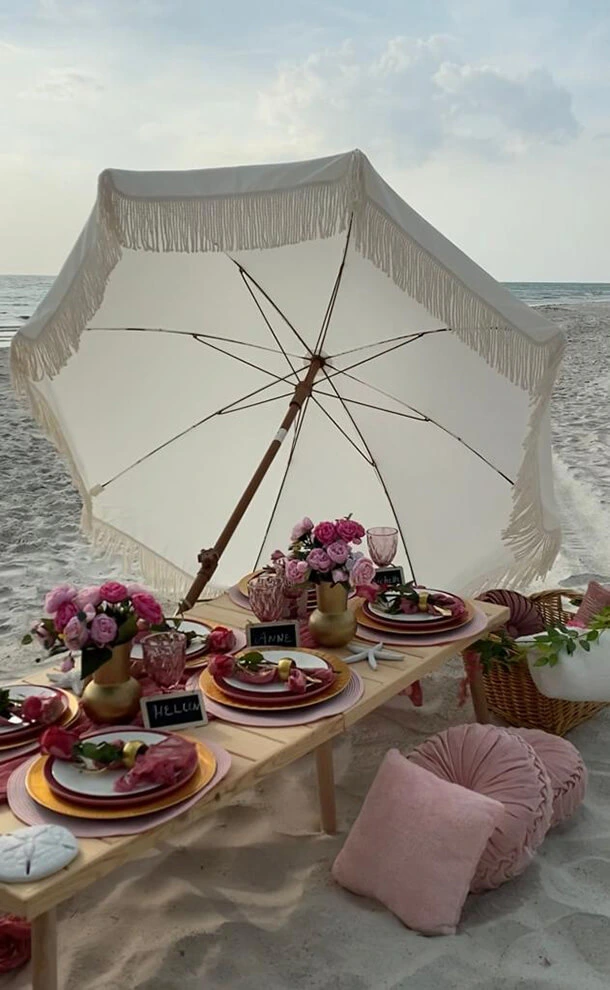 Picnic party, beach and pool